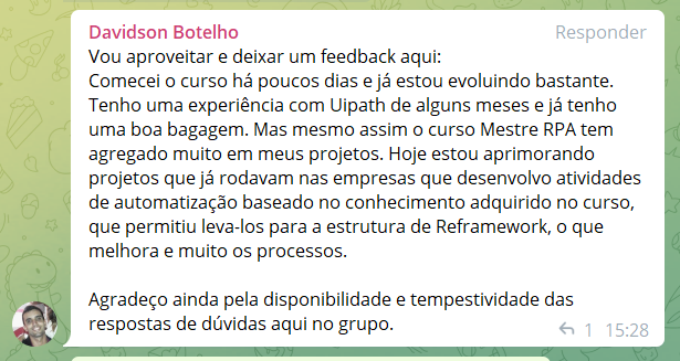 Você pode consumir todo o conteudo da comunidade hiperautomação, e se em 7 dias vc ver que nao é para você, devolvemos todo seu investimento.