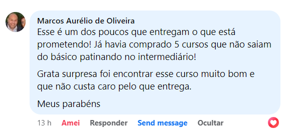 Assista a todas as aulas, explore as ferramentas e participe do grupo de membros. Se, dentro de 7 dias, você não estiver satisfeito, basta solicitar o cancelamento, e reembolsaremos 100% do valor pago.