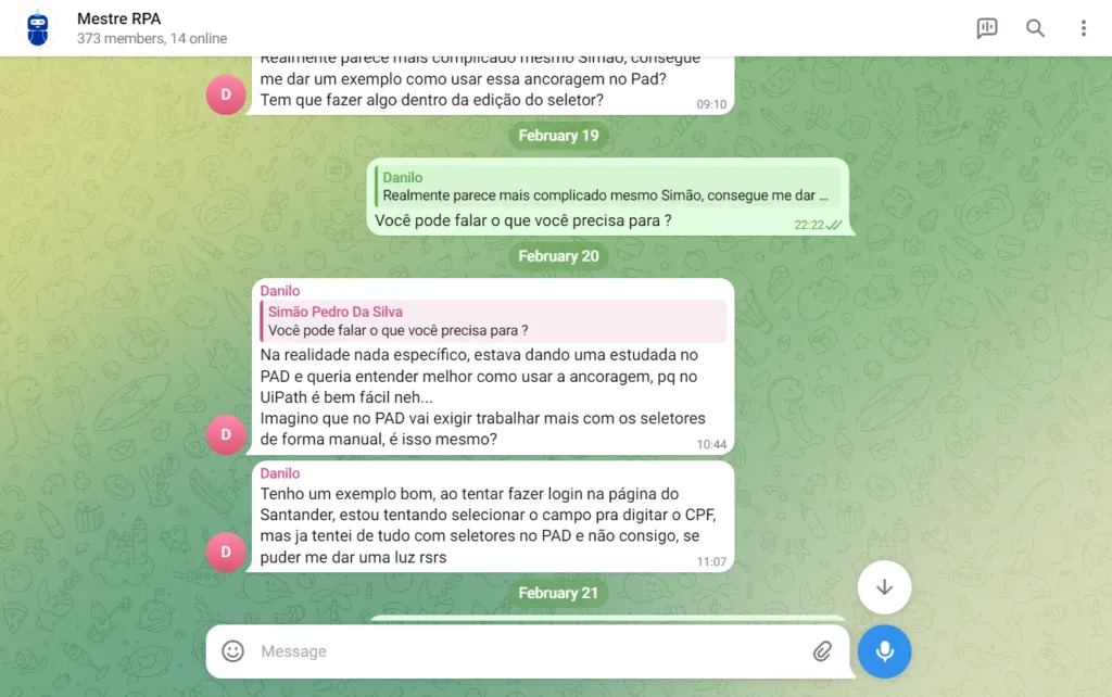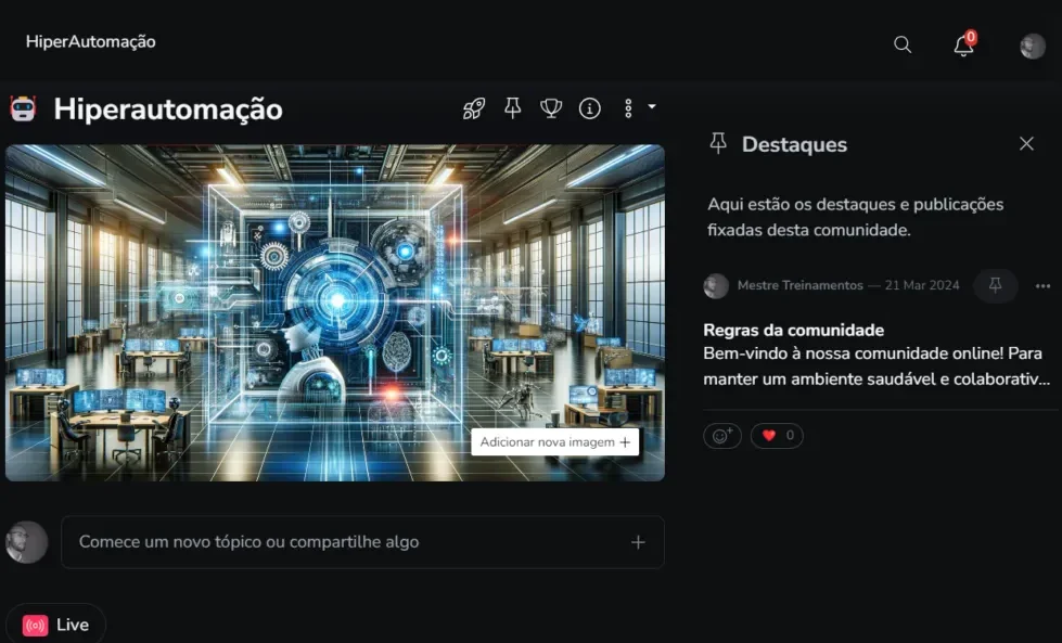 Você terá acesso a Comunidade onde poderá interagir, tirar duvidas e postar assuntos relacionados a hiperautomação.